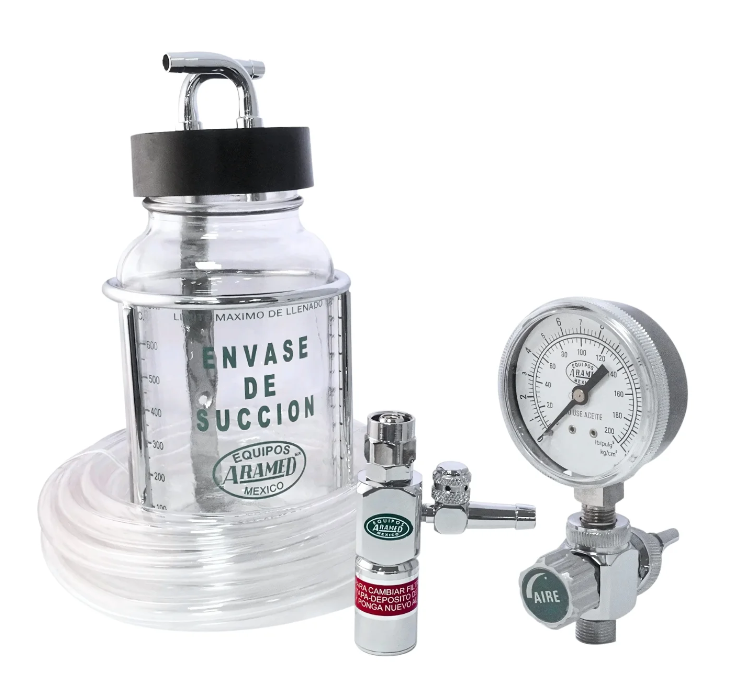EQUIPO DE SUCCIÓN FRASCO 1 LITRO, TROMBA Y REGULADOR CONEXIÓN ARAMED