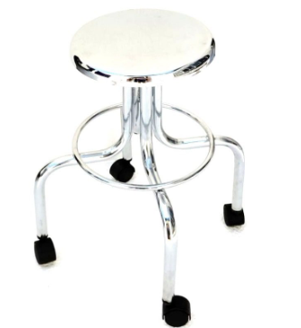 BANCO GIRATORIO DE ACERO INOXIDABLE CON RUEDAS Y RESPALDO