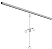 - Porta suero de riel de aluminio con 3 ganchos redondos (2 plegables).