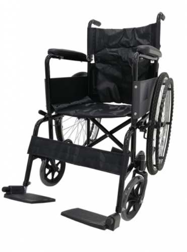 Silla de ruedas Neumática Basic. • Color negro. • Llanta neumática maciza. • Estructura de acero. • Asiento de 46 cm de ancho, respaldo abatible,