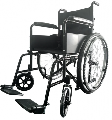 - Silla de ruedas Basic S150B. - Color negro. Ruedas traseras de